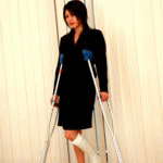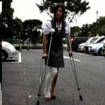 骨折している足で手当もせずに歩いたり、ハイヒールに松葉杖でショッピング。不自由さを痛感する。